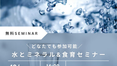 イベント 水とミネラルの食育おはなし会 \急遽決定/ 今回はじめて開催の 水とミネラルの大切さセミナー ファスティング時にはもちろん日頃の生活から生物にとって最も基盤となる水。 人間の約60%は水でできています。 何よりも Read more... 2025.07.21 イベント